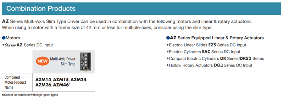 The αSTEP AZ Series multi-axis driver supports EtherCAT communication. Compatible with the CiA402 drive profile. It can be connected to the αSTEP AZ Series DC input motors and electric actuators.